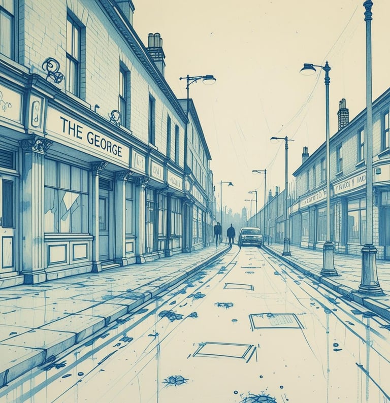 The sound filled the whole pub. Every drip, every gutter overflow. The roof groaned where the water found cracks, trickling through into pint glasses I’d left to catch dust. The ash outside turned to grey soup and ran along Lord Street like spilled paint.